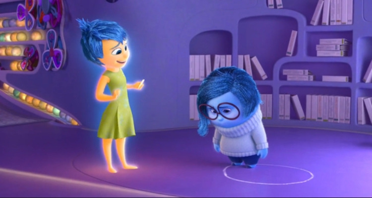 영화 인사이드 아웃은 모든 사람 안에서 감정을 조절하는 본부가 있고, 그 본부에는 기쁨이, 슬픔이, 버럭이, 소심이, 까칠이가 살고 있다는 설정이다. 주인공 ‘라일리’의 감정 본부에는 기쁨이가 대장이었고, 기쁨이는 슬픔이가 라일리를 슬프게 만드는 것이 걱정이 되어서 슬픔이를 뒤로 끌고 간다. 그리고 동그라미를 그린 다음에 이렇게 말한다.