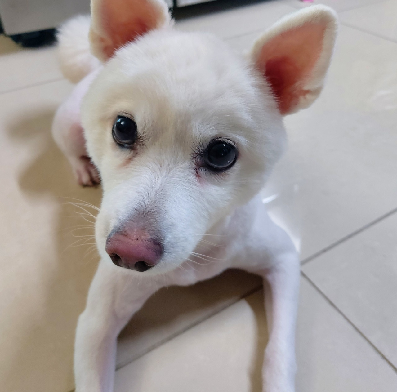 “아구아구! 둥이가 와쩌용! 아구, 이뻐랑!” 그러자 꼬리를 하늘 위로 세우고 살래살래 근육을 움직여 흔들어댄다.