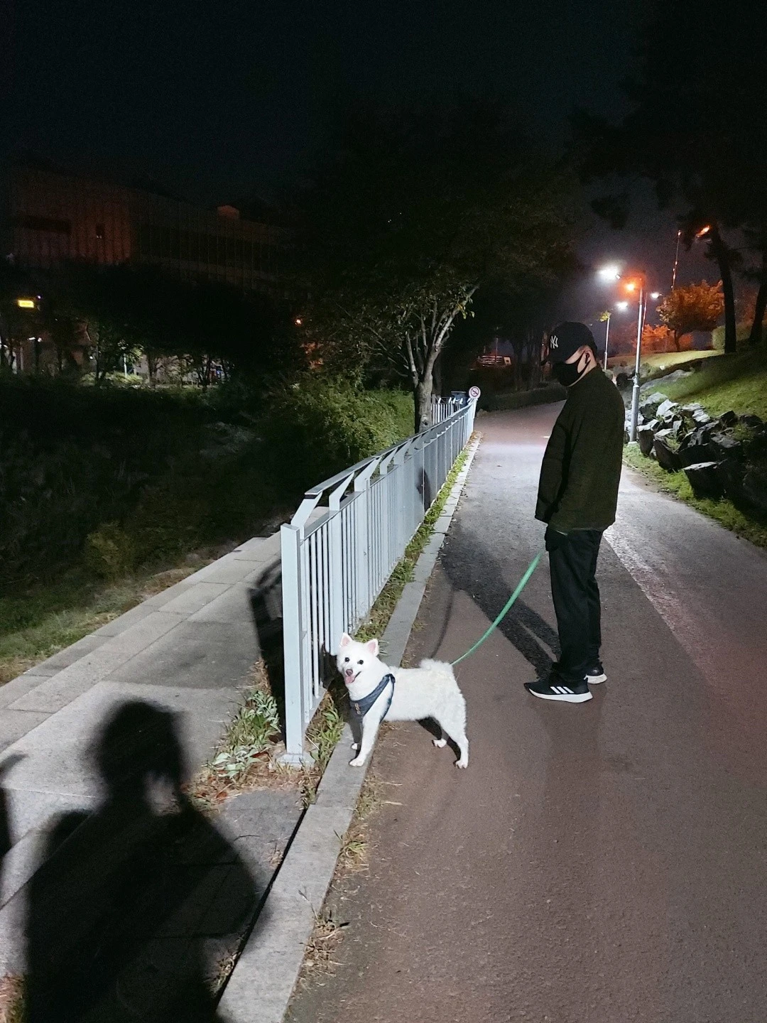 할 수 없이 둥이의 간절함에 변 봉투와 물을 챙겨 산책길에 나서려 한다.