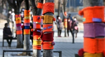 나무가 추울까 봐 아파트 앞 가로수 나무들에게 털실로 짠 예쁜 옷들이 입혀져 있다. 어릴 적 설날에 입었던 작은 색동 한복만큼이나 알록달록한 옷들이 사랑스럽기까지 하다.