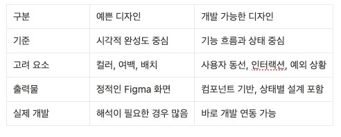 즉, 디자인은 예뻐야 하지만, 그보다 중요한 건 실제로 ‘개발 가능한 디자인’인지 여부입니다.
