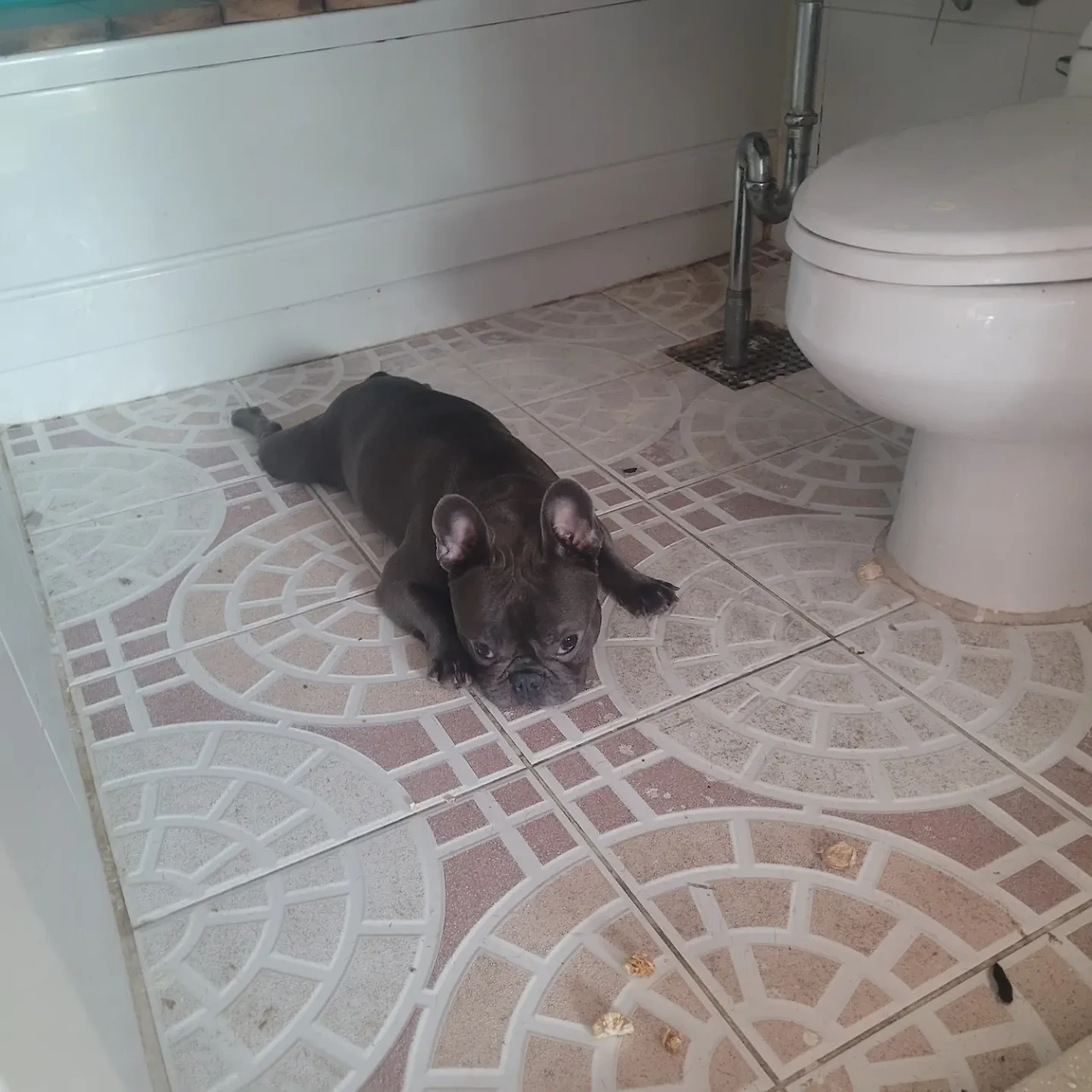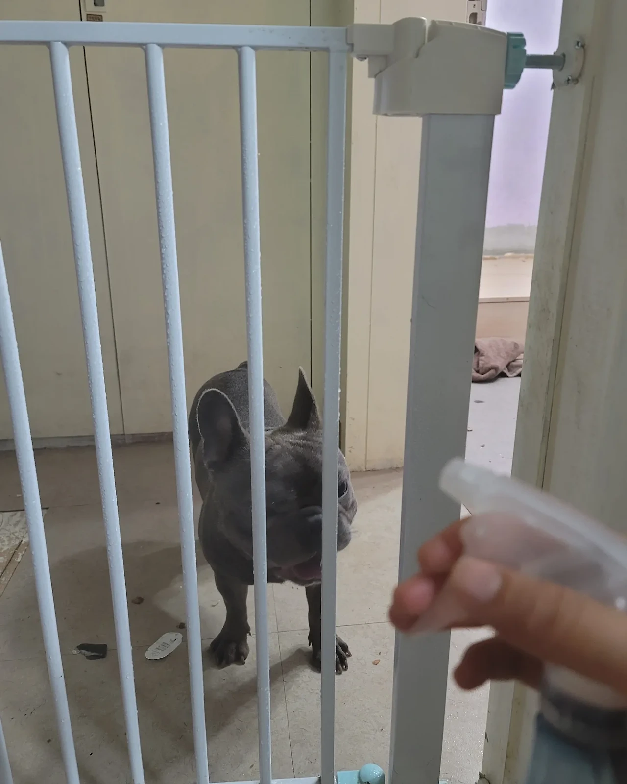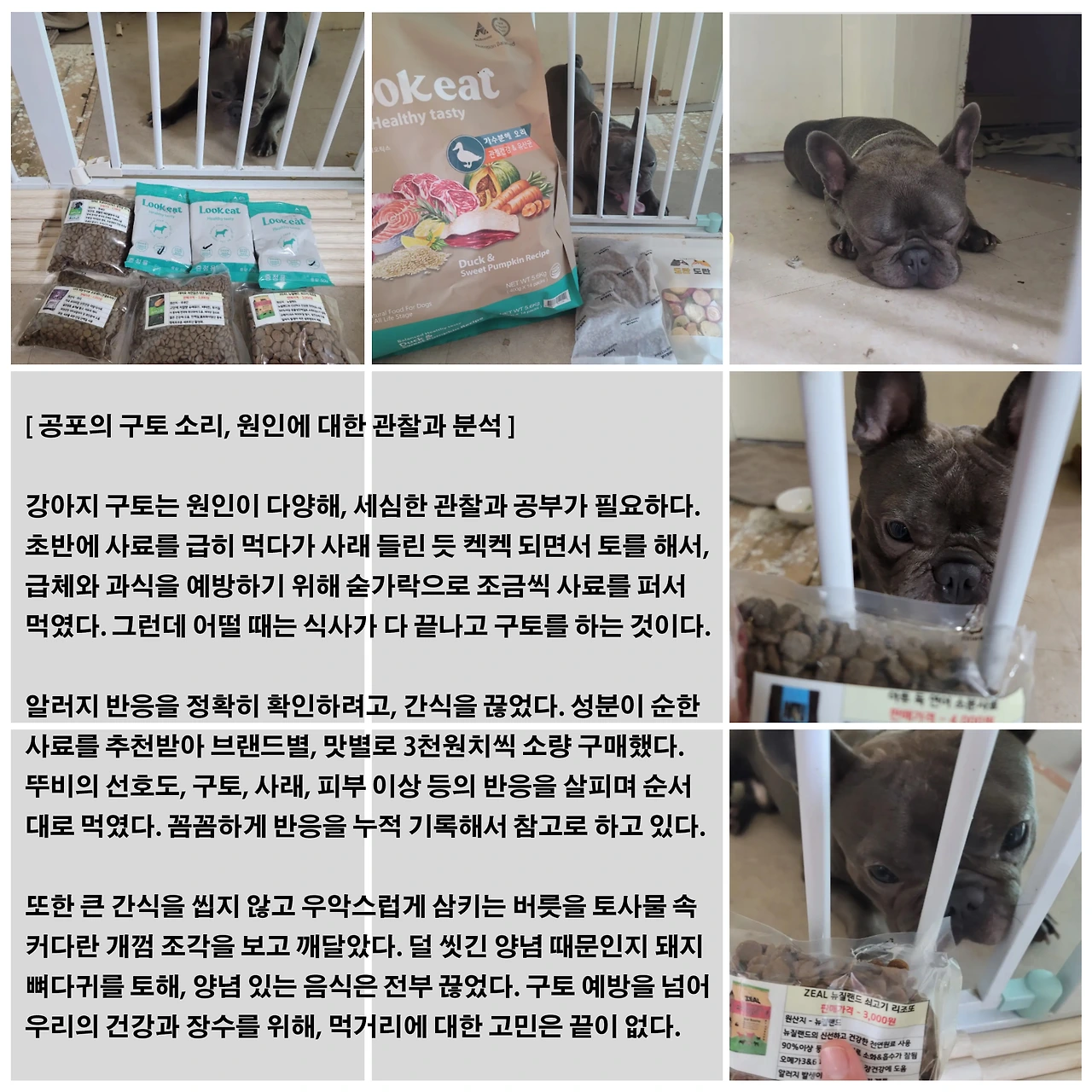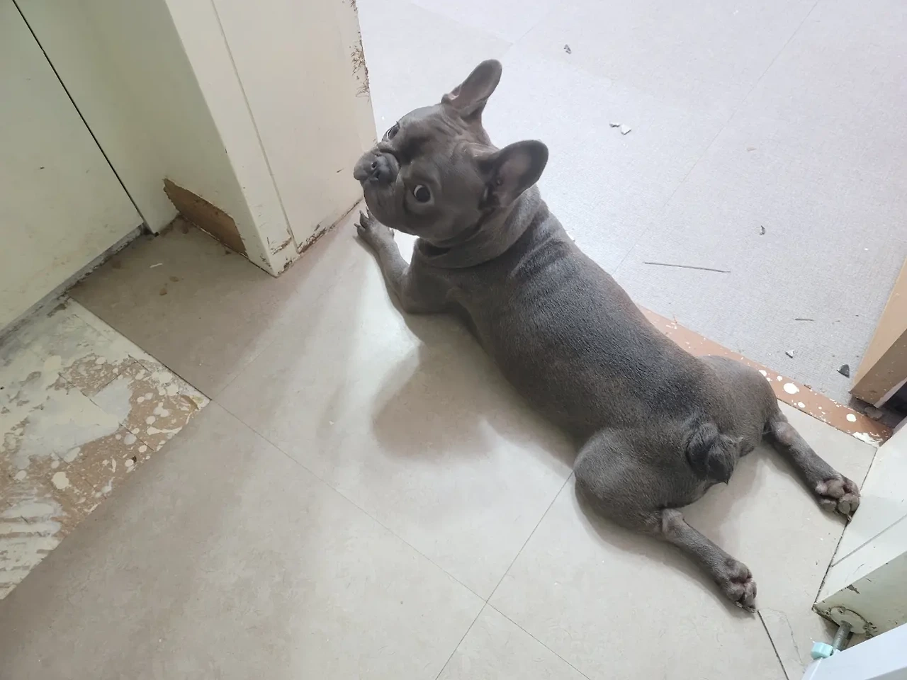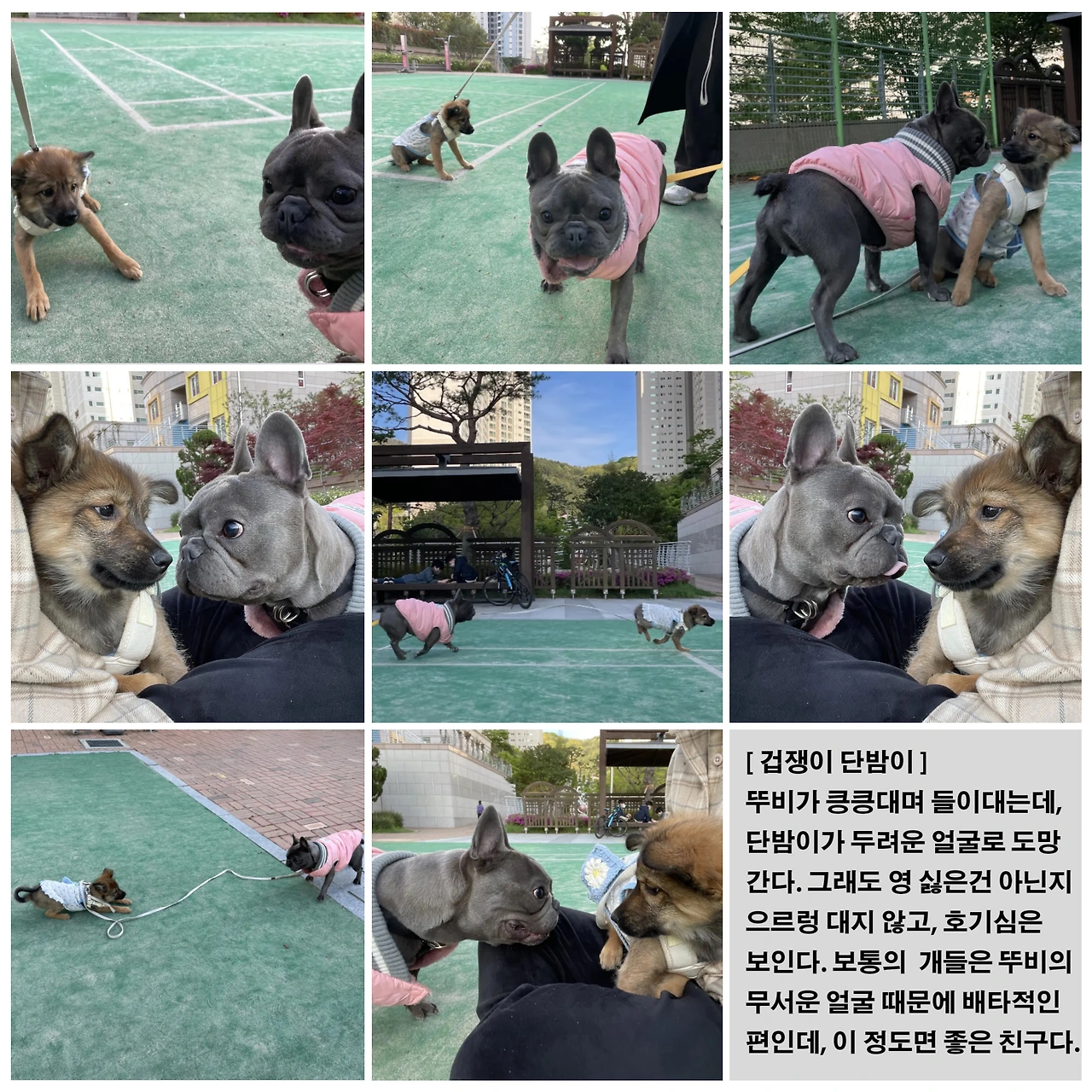 길에서 고양이가 콧물을 찔찔 흘리며 헤롱헤롱 걷고 있었다. 두리번거리다 슈퍼 안에 있는 주인 일지 모를 남자 분을 발견했다. “혹시 떠돌이 고양이면 제가 데려가도 되나요?” 알고 보니 그 분은 반려동물 입양을 주선하시는 분이셨는데, 고양이가 독감이 심해 열을 식히는 중이라고, 며칠 내로 죽을 것 같아 입양은 곤란하다고 하신다. 대신 다른 동물을 알아봐 주실 수 있다고 하셨고, 그게 뚜비의 입양으로 이어졌다. 처음 사진으로 본 뚜비는 무뚝뚝하고 잠만 잘 것 같은 인상이었다. 프렌치 불독에 대한 사전 지식이 없는 상태에서, 조금은 충동적으로 입양을 결정했다. 그리고 처음 데려온 날부터 심상치 않은 기싸움이 시작됐다. 뚜비는 생각보다 크고 무거워서 준비한 켄넬에 겨우 들어갔다. 어디로 갈지 모른다는 긴장감 때문이었는지, 공격적으로 짖어댔고 잠깐 들렸던 본가 할머니 방에 오줌을 쌌다. 우리 집에 데려오니 순식간에 거실에 오줌을 누고 물건들을 물어뜯기 시작했다. 가만 놔두면 소파고 테이블이고 다 부술 기세였다. ‘세상에 나쁜 개는 없다’는 TV프로에 자주 등장하는 ‘나쁜 개’를 내가 우리 집에 들인 건가, 싶어서 머리가 띵했다. 갓 리모델링이 끝난 소중한 내 집을 이 폭군이 갉아먹게 둘 수는 없었다. 어쩔 수 없이 삼일 정도는 뚜비를 화장실에 끈으로 묶어뒀다.