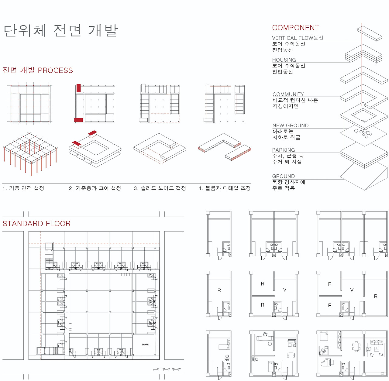 - 단지 계획: 보차 분리, 입면 디자인, 주차 편의
