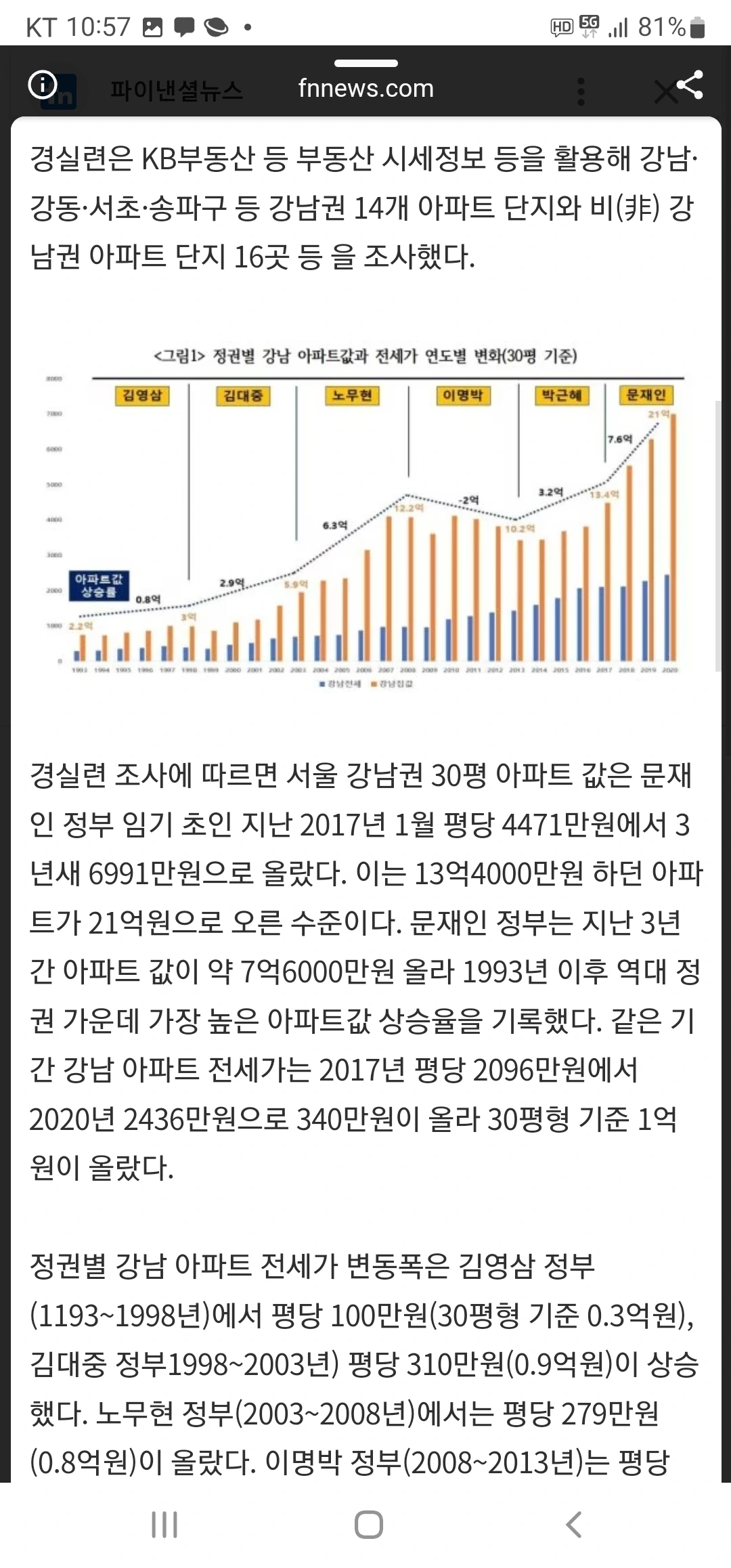 파이낸셜 뉴스 기사, 동아일보 기사,그래프 출처: 경실련