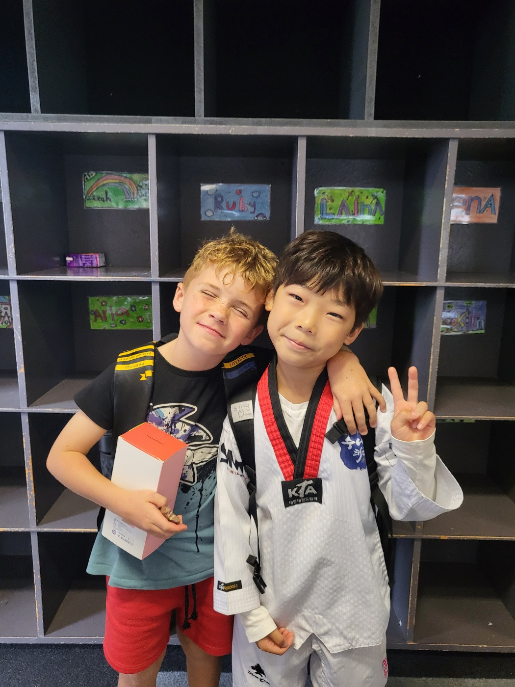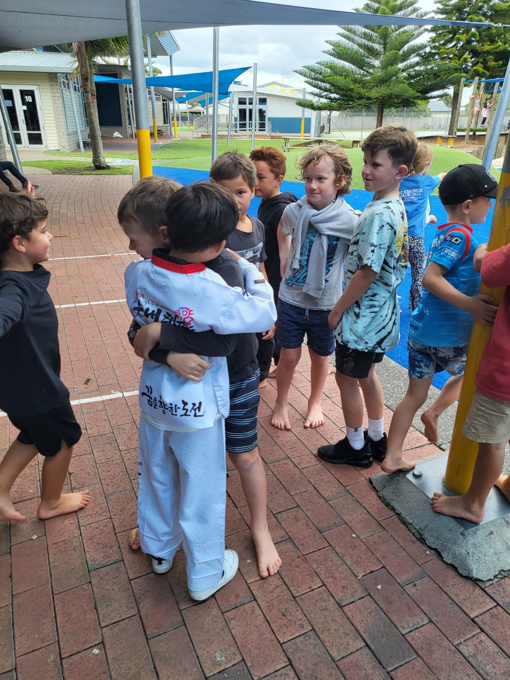 초등 남아에게 ‘태권도’란 절대적 강함의 상징이다. 동네의 웬만한 학교 폭력 사건은 태권도 관장님 말 한마디로 해결될 정도로 그 위세가 대단하다. 일부러 세분화시킨 빨주노초파남보 띠를 하나씩 딸 때마다 아이들의 자신감은 수직 상승한다. 뉴질랜드에 오기 얼마 전에 국기원 심사를 받고 1품을 땄으니 기민이의 태권도 부심은 하늘을 찌를 듯했다. 전 세계에 태권도를 알리겠다는 마음으로 뉴질랜드까지 도복을 챙겨왔고, 괜히 그거 입고 옆돌기하고 발차기하면서 동네를 떠돌았다. 사실 엄마 눈에는 기안84 만화에 나오는 우기명 어린 시절처럼 보였지만, 부끄러운 마음을 내색하지 않고 멋지다 최고다 추켜세웠다. 그게 좀 과했던 것일까. 기민이는 환갑잔치에 제일 고운 옷을 입고 가는 할머니처럼, 스쿨링 마지막 날 의상으로 태권도복을 골랐다. 진정한 핵인싸만이 소화할 수 있는 옷을 입고 위풍당당하게 등교했다. 내 배에서 이런 애가 나오다니 정말 미스터리다.