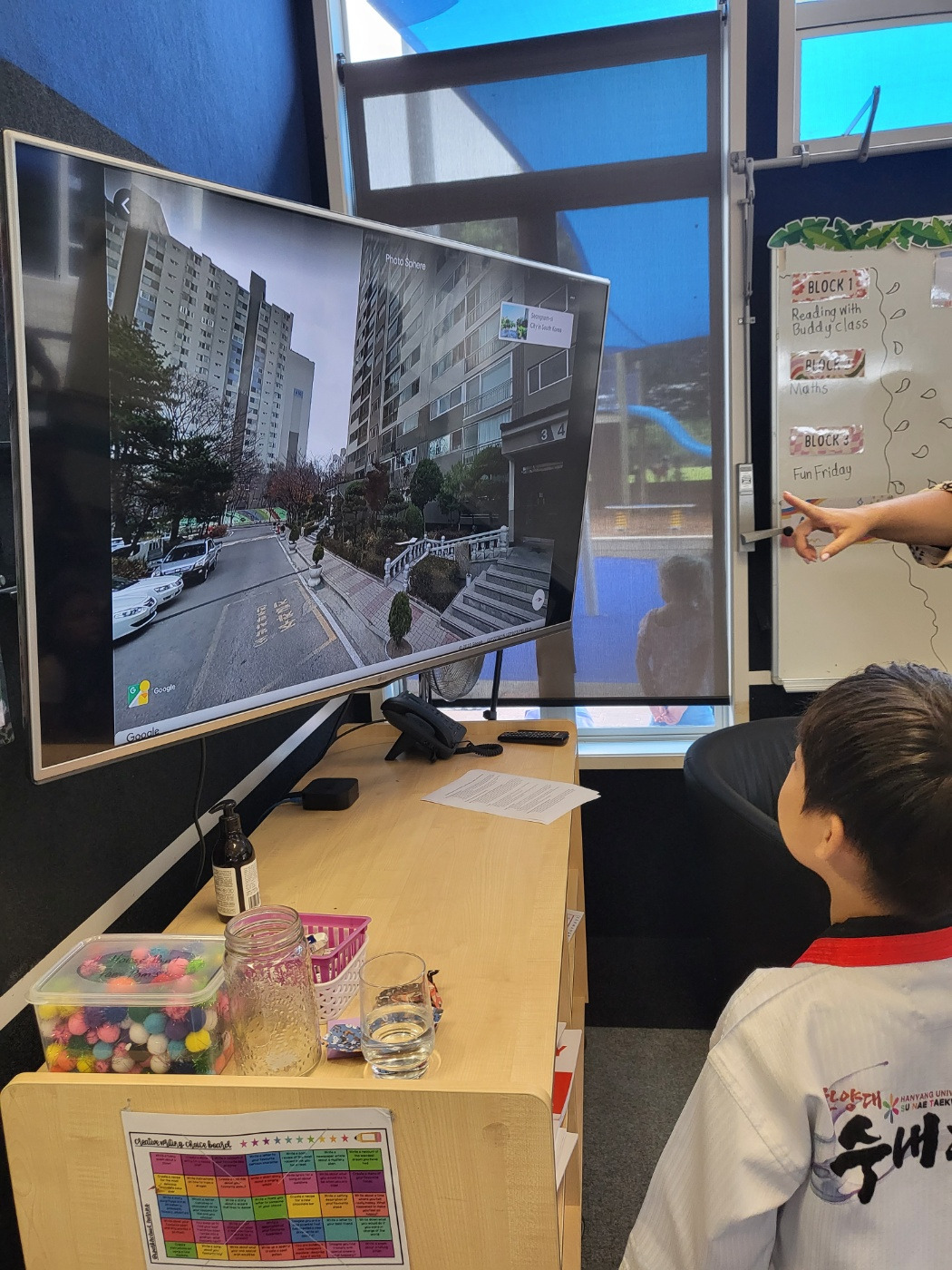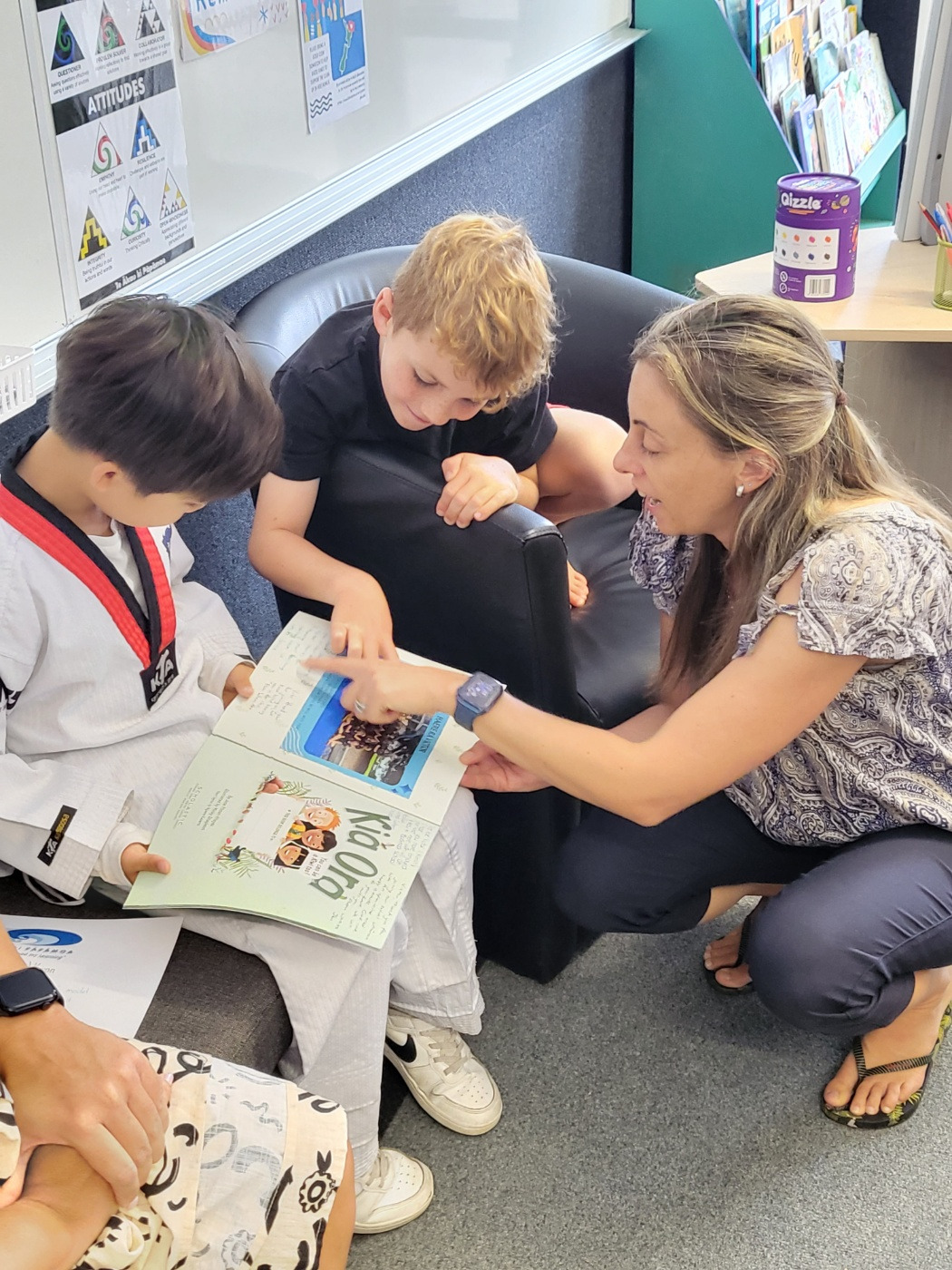그날 수업을 모두 마치고 선생님은 특별한 시간을 마련해 주셨다. 큰 스크린에 구글 맵을 띄워 기민이가 사는 나라, 다니는 학교, 집을 찾아서 보여주셨다. 그리고 한국이나 기민이에 대해 궁금한 점이 있으면 질문하라고 하셨다. 아이는 용케 질문들을 다 알아듣고, 서툴지만 자신이 할 수 있는 영어 표현을 총동원하여 성의껏 답했다. 어떤 친구가 우리가 사는 아파트를 보고는 그 건물이 통째로 우리 집인 줄 알고 부자냐고 물어서 한바탕 웃음바다가 되었다. 뉴질랜드에서는 대도시가 아니면 모두 낮은 건물에 살기 때문에 고층 건물에 사는 것이 신기한 모양이었다. 선생님은 기민이에게 상냥함으로 반 친구들에게 모범이 되어주어 고맙다는 상장을 수여하셨다. 그리고 반 아이들과 함께 찍은 사진과 메시지 그리고 뉴질랜드 문화에 대한 동화책을 선물로 받았다.