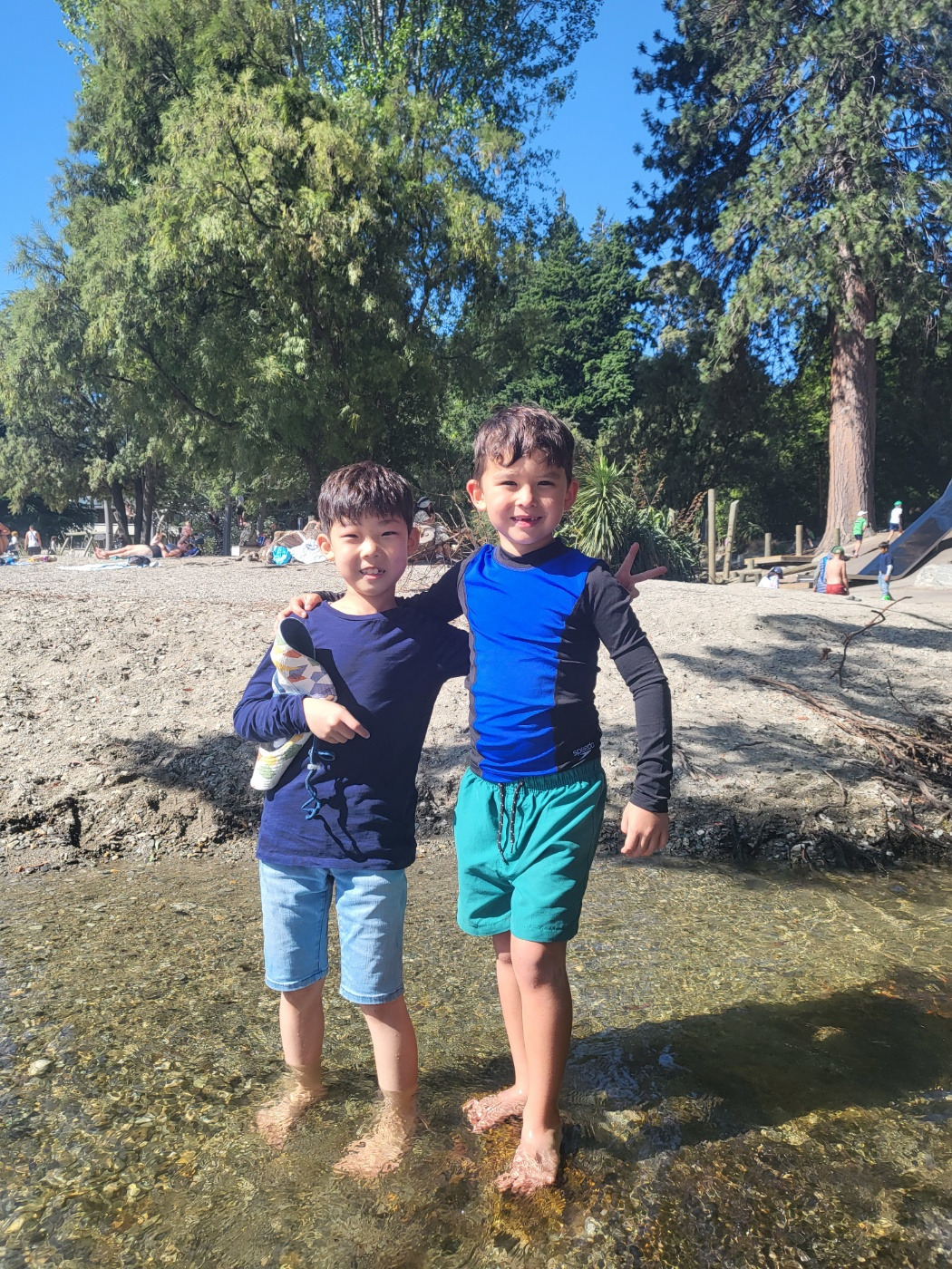 매일매일 출근 도장 찍듯이 동네 놀이터에 갔더니 친구도 사귀었다. 처음으로 사귄 친구 이름은 제이비어. 얘도 퀸스타운에 여행을 왔다고 했다. 아빠는 호주 사람, 엄마는 한국 사람이란다. 어쩐지 얼굴이 친숙하더라니. 한국말은 거의 못했지만, 리스닝은 조금 되는 편이라 제이비어와 기민이는 영어와 한국어를 섞어가며 의사소통을 했다. 기민이는 100% 영어로 말한 것 같은 착각 속에 자신감이 붙었다. 둘은 하염없이 땅을 파고 물을 붓고 미끄럼틀을 백번씩 타면서 놀았다. 같은 행동에 같은 말을 반복하니 저절로 놀이터 영어가 늘었다. ‘나이스~ 바로 이거쥐!!’ 나는 속으로 쾌재를 불렀다.