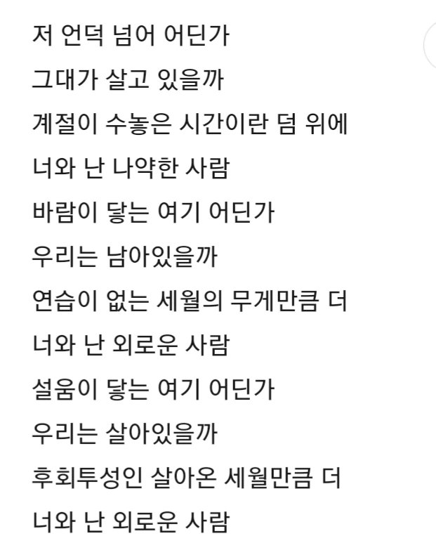 사랑이 그리움뿐이라면 시작도 아니했습니다 오랜 기다림은 차라리 통곡입니다. 사랑에 이별이 있다 하면시작도 아니했습니다.