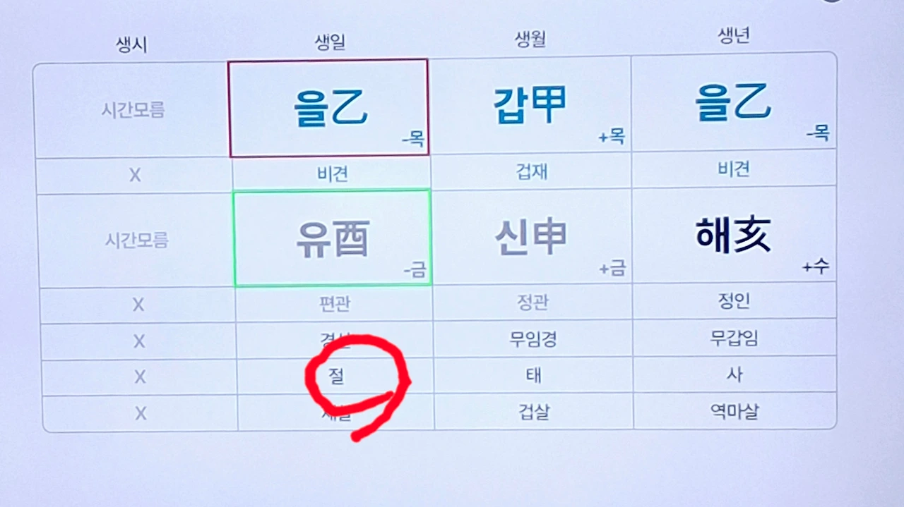 예를 들어 천간에 하늘인 을목을 소환해 낸 땅이 지지인 유금입니다.
