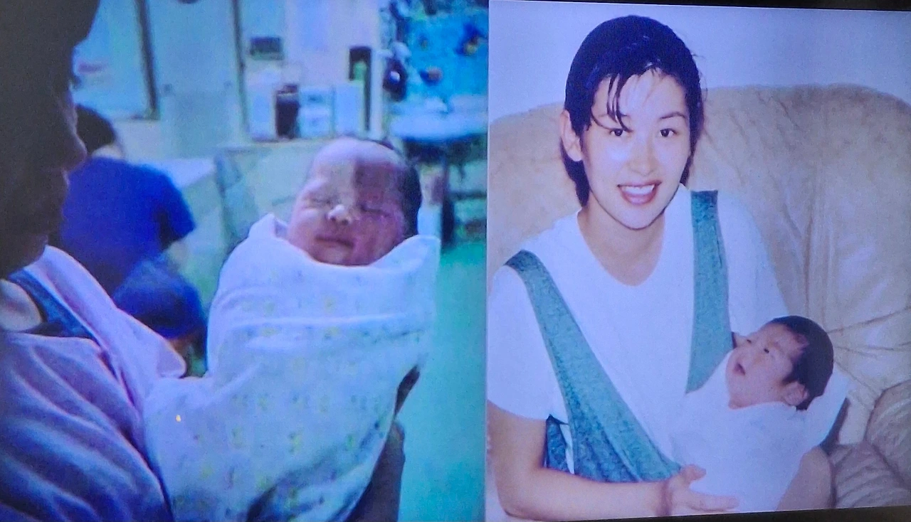 미나가 태어난 날 발그레 상기된 표정의 젊은 아기 엄마도 보입니다.