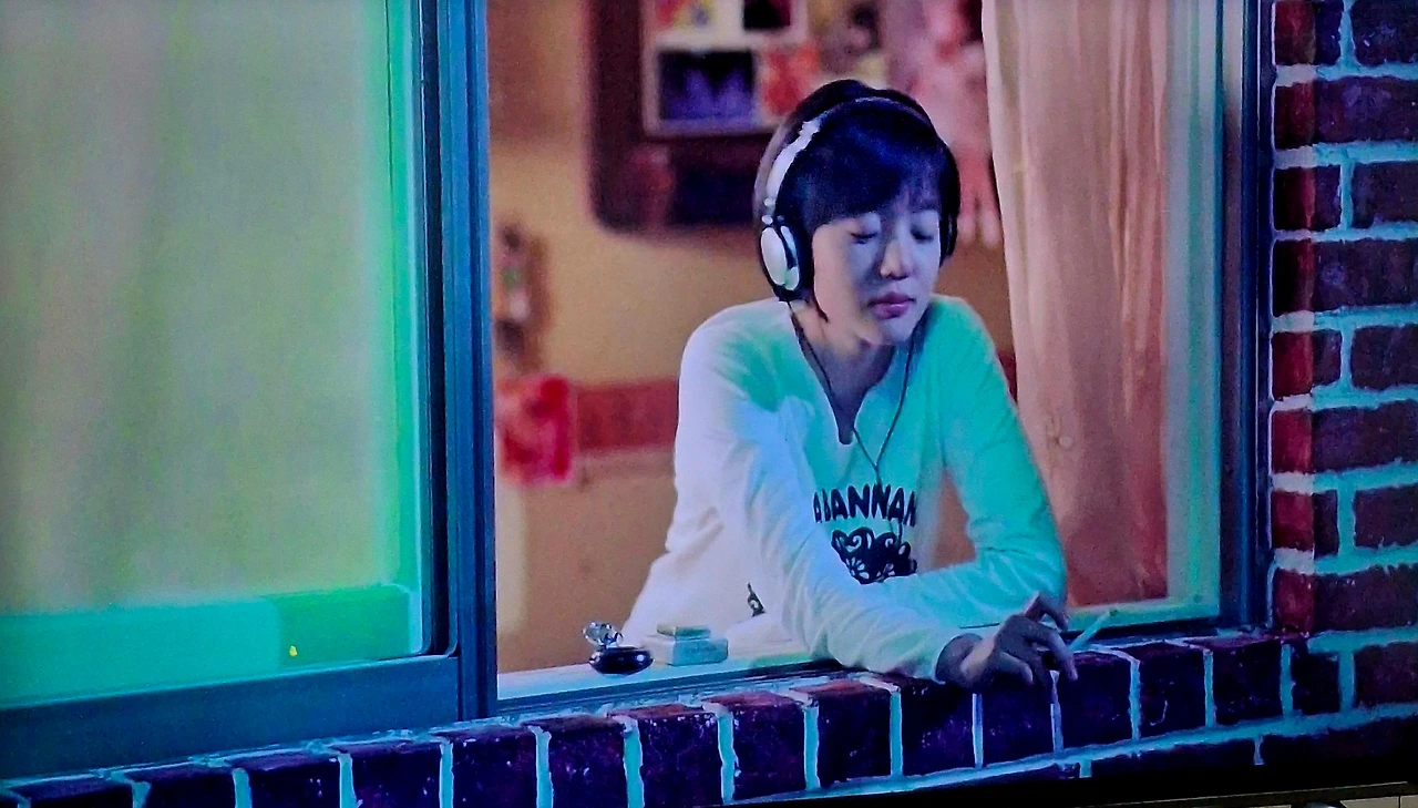 민아는 락음악에 심취해 있어요. 헤드폰를 끼고 맥주도 마시고 담배도 피워요.
