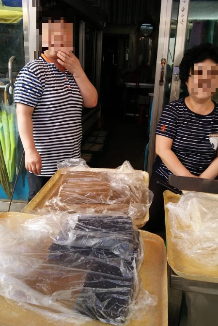 모나미 볼펜으로 찍찍 갈려 써놓은