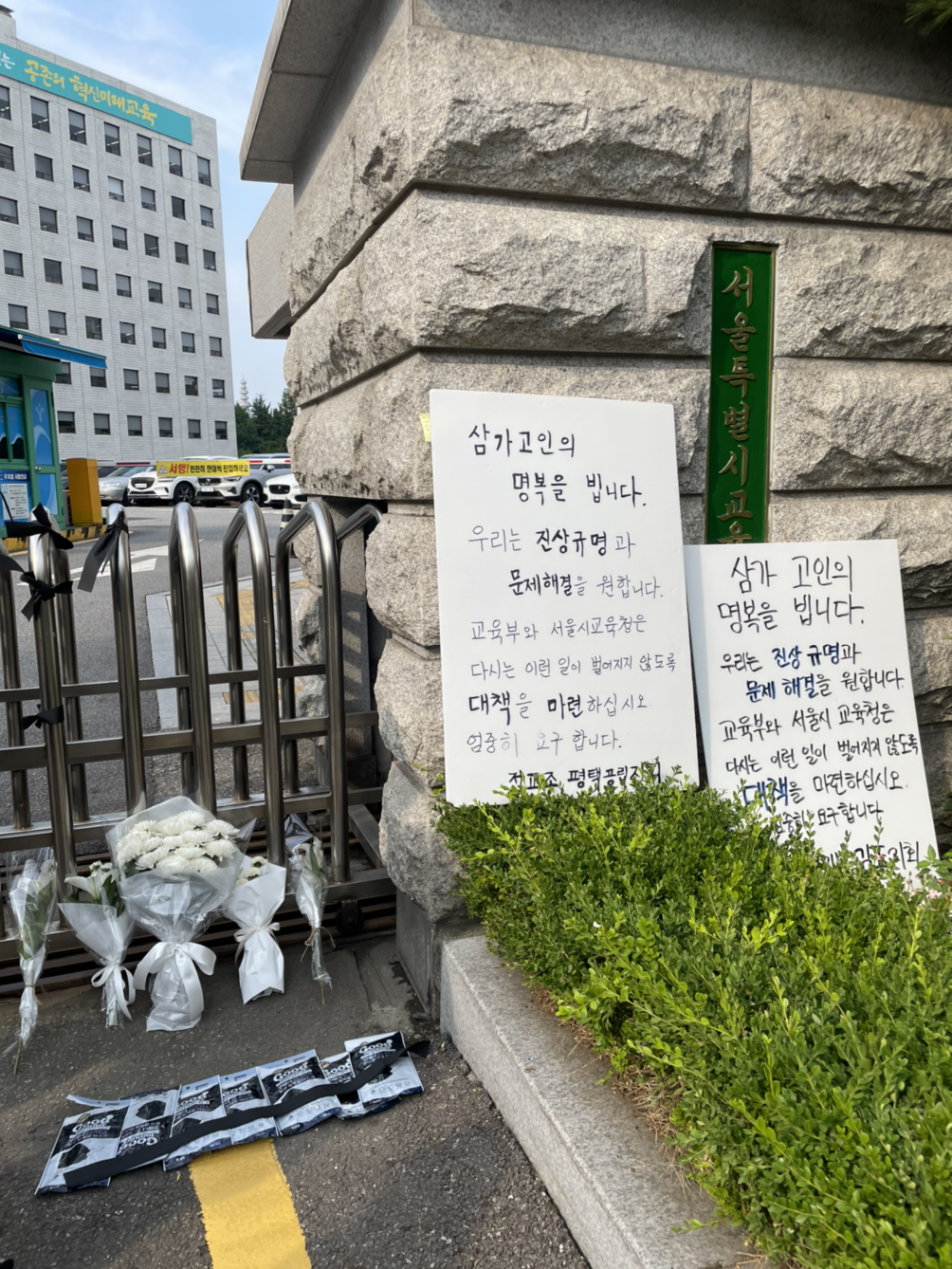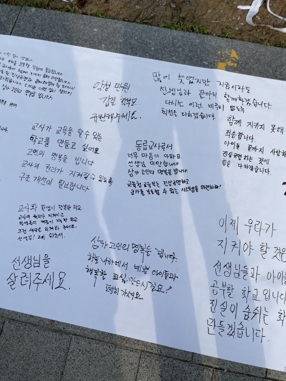 동료교사 이름으로 보내진 수많은 근조화환을 보면서, 기자회견에서 발언자로 나선 선생님들의 이야기를 들으면서 하염없이 그저 눈물만 흘렸습니다.