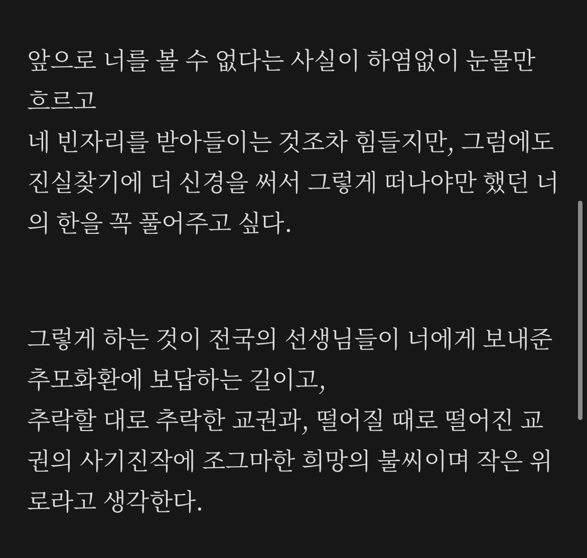 부디 교사들이 교육을 포기하지 않기를, 공교육이 정상화되는 그날을 기다립니다.