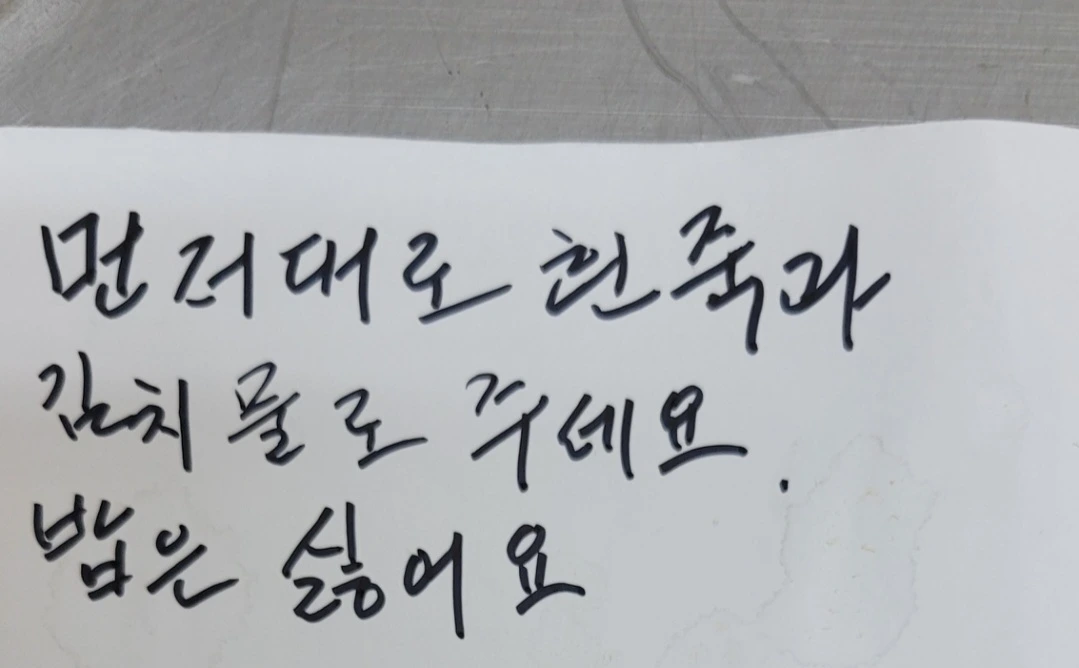 ' 먼저대로 흰 죽과 김치물만 주세요.