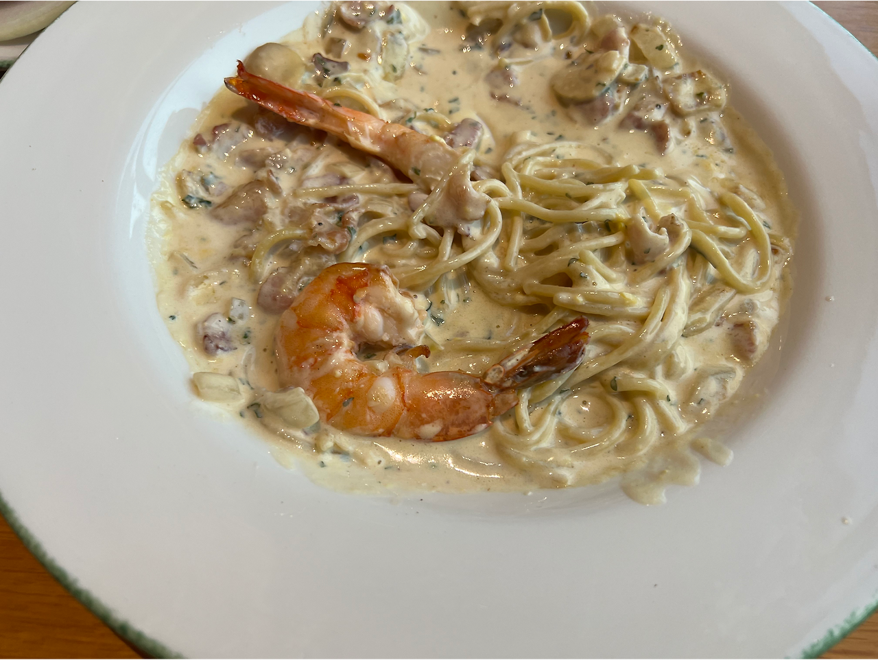 카르보나라는 찐득하고 묵직하고 크리미한 질감이 돋보였다. 나는 체중에 항상 유념하는 사람이랑 두 번만 먹고는 손을 뗐다. 너무 진하고 깊은 맛이었다. 구워진 새우도 애드온 해서 주문했는데, 파스타 소스에 섞어 먹는 게 아쉬웠다. 그릴에 구워진 새우 자체를 즐겨도 좋았다. 불 맛이 느껴지는 향미가 너무 좋았다.