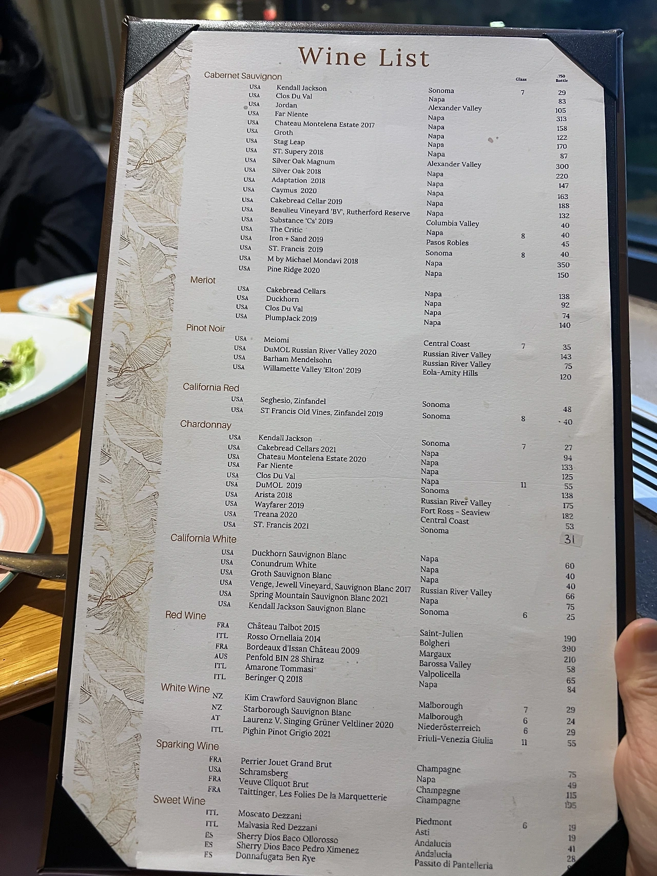 아무래도 음료가 없으니 목구멍이 턱턱 막힌다. 담당 서버에게 와인 한 잔을 시킨다. 오늘의 선택은 메이오미 피노 누아다. 나는 카베르네 쇼비뇽 레드 와인을 안 좋아한다. 끝 맛이 너무 텁텁하고 묵직하다. 허나 피노 누아는 끝 맛이 없거나 상당히 가볍고 얕다. 피노 누아는 사랑이다. 메이오미라는 브랜드는 잘 모르겠고 일단 피노 누아 1글래스 달라고 했다. 오늘의 선택은 우수했다. 기대한 대로 피노 누아는 끝 맛이 라이트하고 상큼하다. 느끼한 고기 한 점 먹고 피노 누아 한 모금을 한다. 딱 좋다.