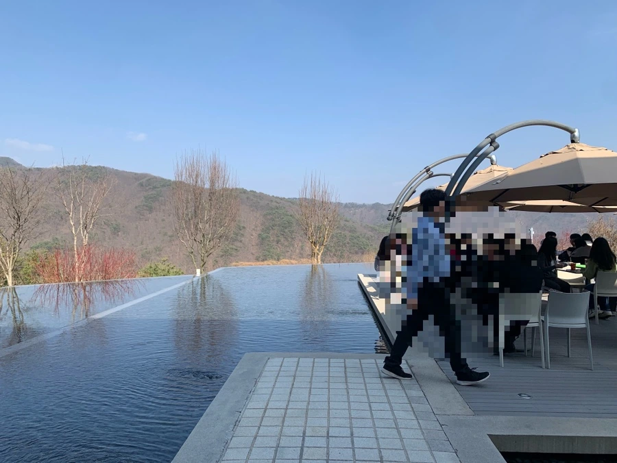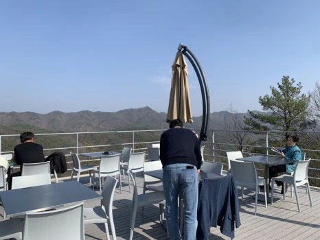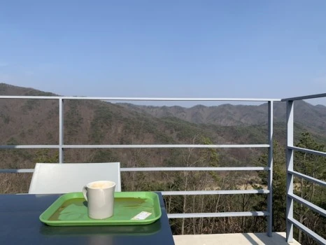 겨울 눈 내린 산을 카페에서 넋 놓고