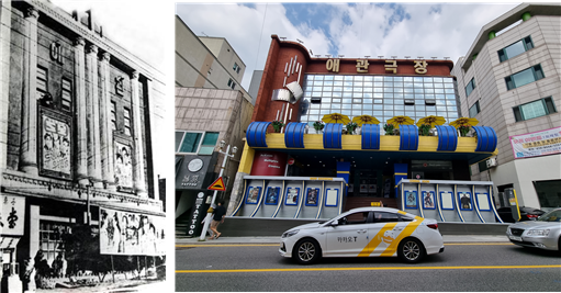 (좌) 1950년대 애관극장 전경 / (우) 현재 애관극장 전경