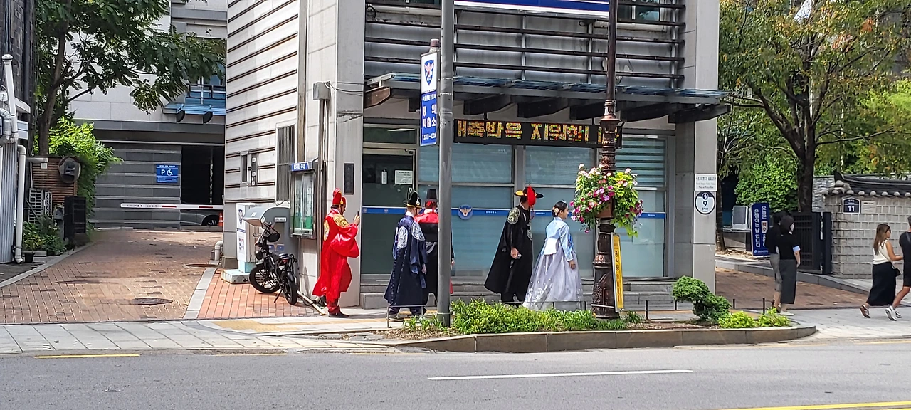 한복을 차려입은 외국인들이 눈을 즐겁게 한다.