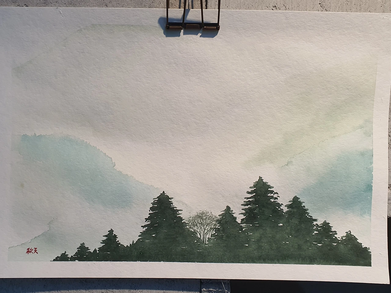 오늘 그린 그림의 과정을 사진으로 올려봤다. 오늘은 솔직히 시간적인 여유가 없었다. 나무를 다 그리고 나서 선생님의 수업을 듣고 나니 30분 정도밖에 남지 않았는데, 그래도 할 수 있으니 그려보라는 선생님의 응원에 힘입어 최선을 다해 빠르게 그려봤다. '고바야시 케이코'의 '도치기 현 나스시오바라(안개)' 풍경과는 비교할 수 없겠지만, 그래도 선생님이 마음에 든다고 하니 다행이라 생각했다(나무는 좀 더 연습이 필요하다는 걸 느꼈다).