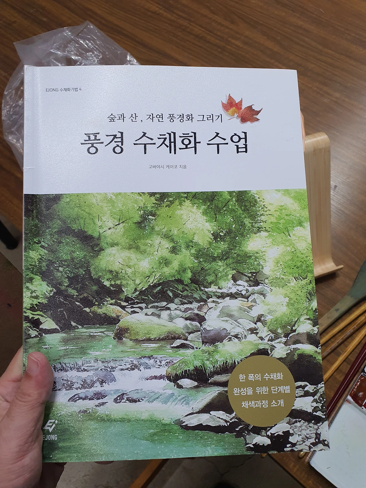 지난주부터 보고 그리고 있는 교재 <숲과 산, 자연 풍경화 그리기 - 풍경 수채화 수업(고바야시 케이코 지음, 이유민 옮김, Ejong, 2017)>인데, '한 폭의 수채화 완성을 위한 단계별 채색과정'을 소개하고 있다. 이전에 가지고 있던 교재 <기초부터 쉽게 배우는 - 풍경 수채화의 세계(전성기 지음, 재원, 2011)>에 비해 비교적 최근에 나온 교재라 그런지 전체적으로 그림들이 가벼운 느낌이다. 선입견일 수 있겠지만, 일본 화가가 그린 그림이라 그럴 수도 있겠다는 생각이 들었다. 선생님 얘기로는 옛날보다는 요즘 수채화가 좀 가볍게 그리는 경향이 있단다.