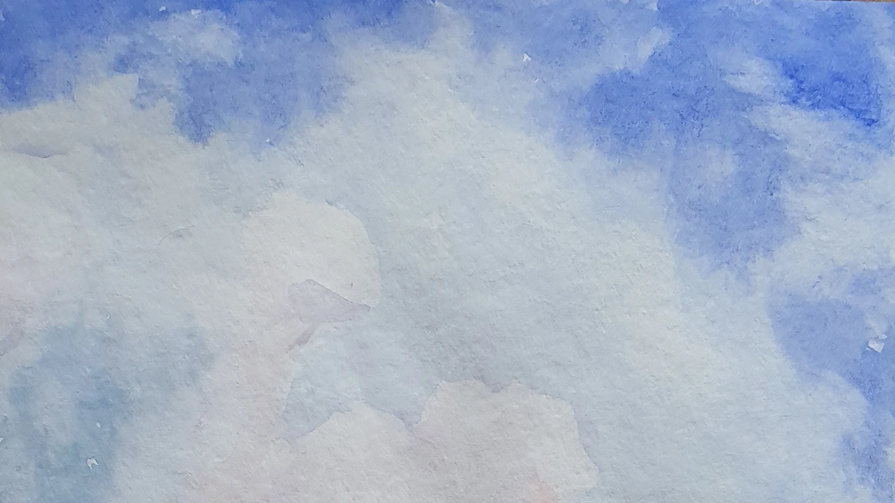 조금 남은 자투리 시간에 선생님이 하늘과 구름을 그려보라고 했는데, 역시나 내 고질병인 조급증(躁急症) 탓에 느낌을 제대로 표현해내지 못했다. 구름은 역시나 아직도 내겐 어려운 숙제임이 틀림없다. (평소 구름을 그릴 때마다 물감을 닦아내는 버릇을 아직도 버리지 못하고 있다. 수채화에서 구름은 칠한 물감을 닦아내는 게 아니라 여백을 조금씩 채워 나가는 거라는 걸 미술학원 첫 시간에 배웠었는데, 아직도 똑같이 실수하는 나 자신이 조금은 한심하게 느껴져서 약간 의기소침해졌다.)