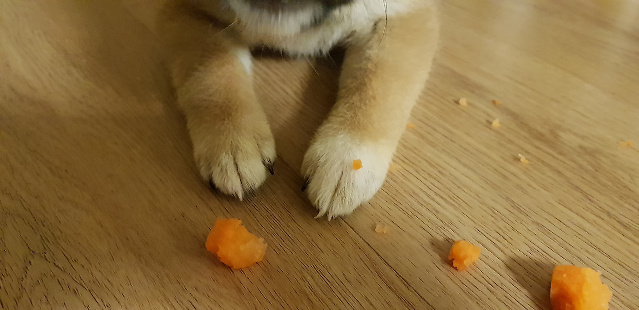 무럭무럭 자란 호두는 3차 예방접종까지 무사히 마쳤다. 1차 예방접종 후, 수술이 가능하고 비교적 위생적인 동물병원을 알게 되어 병원을 옮겼고, 열이 나는 등의 이상반응 전혀 없이 접종을 완료했다. 미얀마의 동물병원들이 항체검사를 진행하지 않는 탓에 나는 마음 속으로 항체가 잘 만들어졌기를 바라는 수밖에 없었다. 애타는 엄마 마음도 모르고 천진난만하게 손을 물어대는 호두에게 나는 영양식을 만들어주기로 했다.