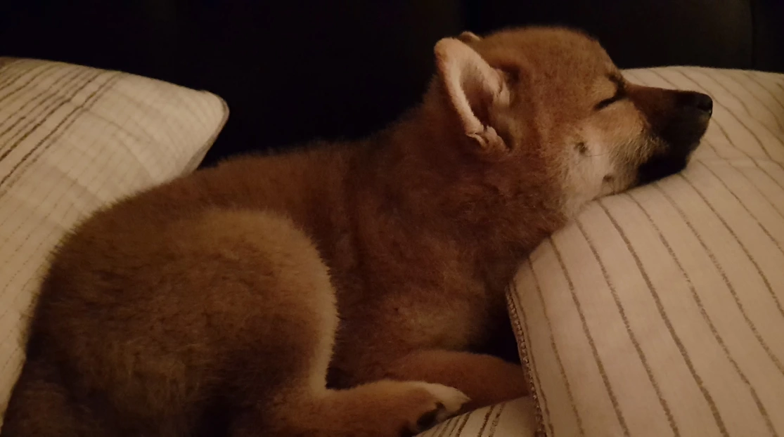 어느날 갑자기 베개를 베고 자기 시작한 호두. 강아지들도 어딘가에 머리를 베고 자는 것이 편한가 보다. 호두 전용 베개를 하나 만들어줘야겠다고 다짐했다.