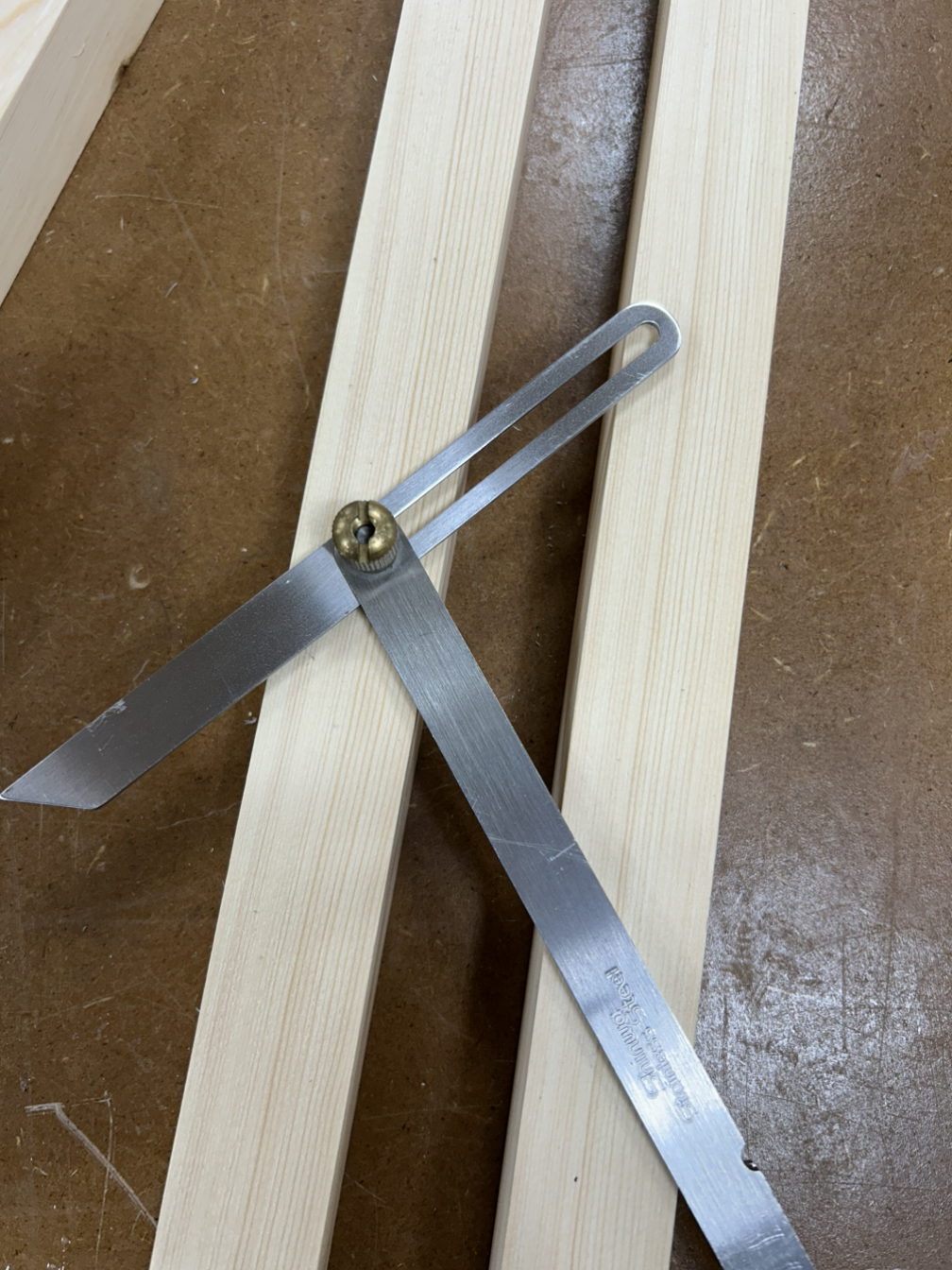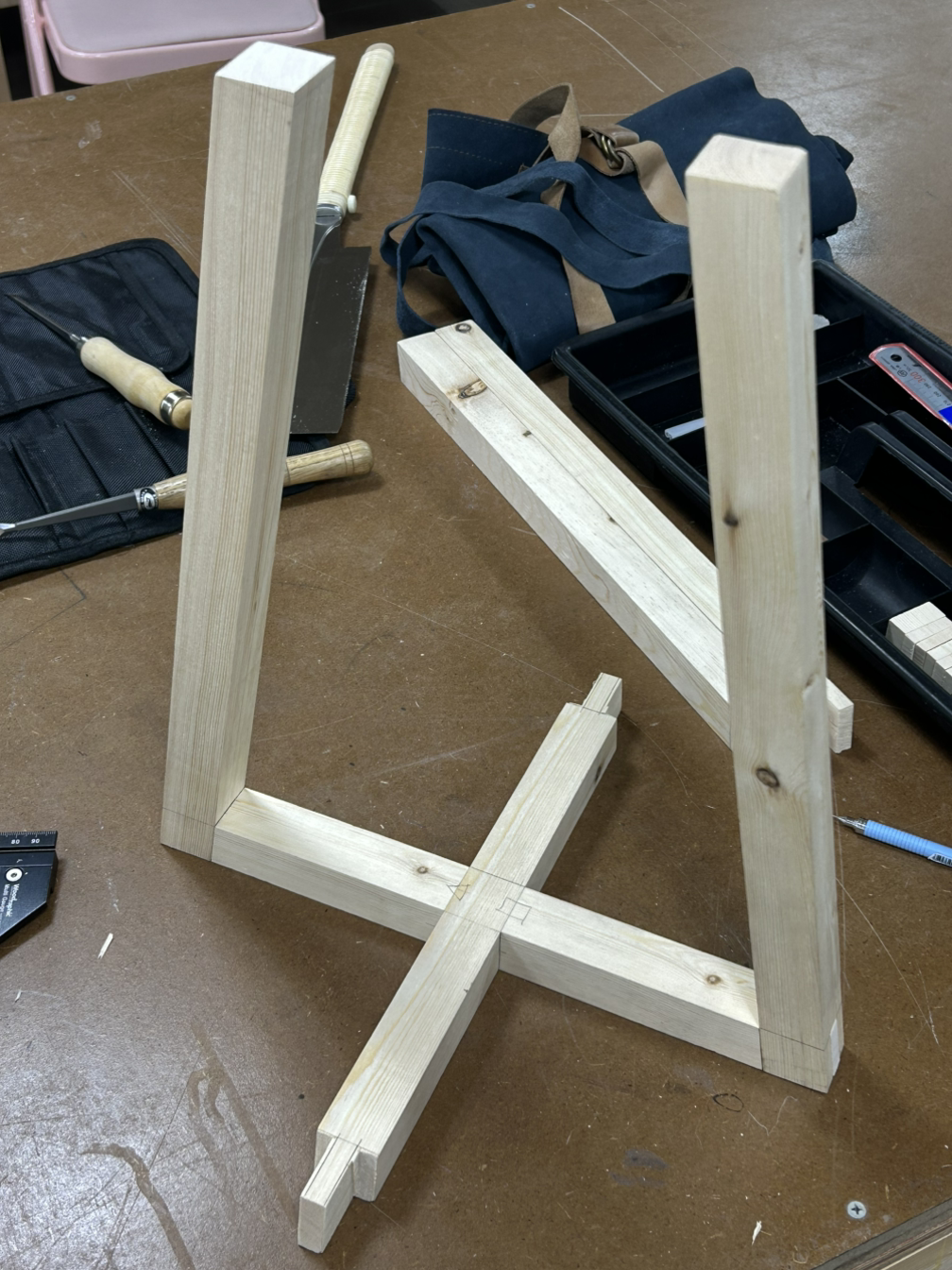 나가야 한다. 먼저 금 긋기인데, 가장 핵심은 다리의 빗면이다. (85도였는지 80도였는지 기억이 안 나지만…) 자유자를 이용해 균일하게 빗면의 각도로 마킹을 하고 필요한 곳에는 칼금을 넣었다.