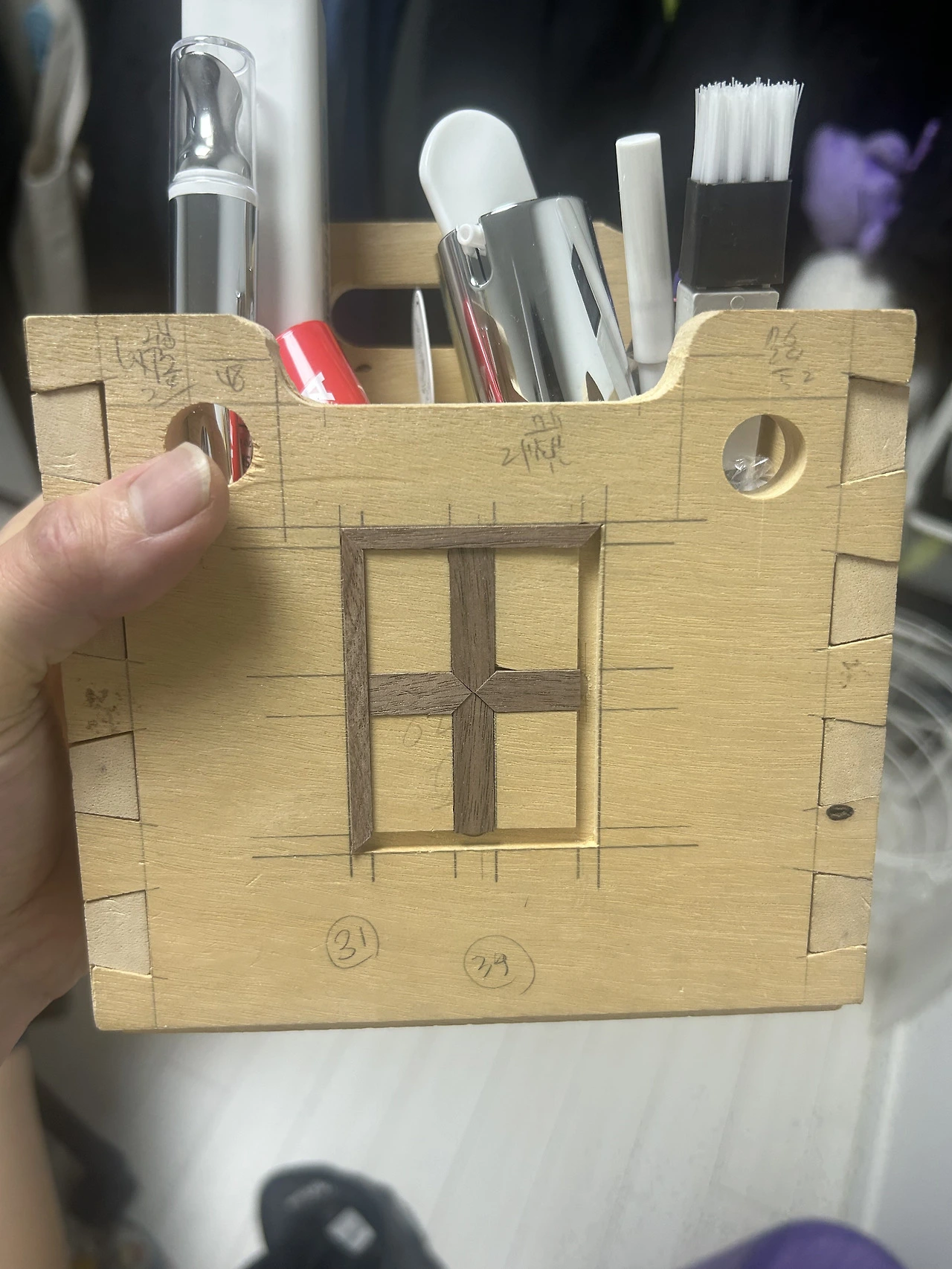 재단부터 먹금(치수), 앞 뒤판 손잡이, 주먹장, 사개장부, 우측판 상감, 좌측판 부조, 칸막이, 밑판 등 각 부분들을 어떻게 만드는지 차근차근 숙지하는 것이 가장 핵심 목표. 독학으로 마음먹은 것이 아니라면 되도록 공방에서 각 부분의 설명을 들으면서 만들어 나가는 것이 좋다.