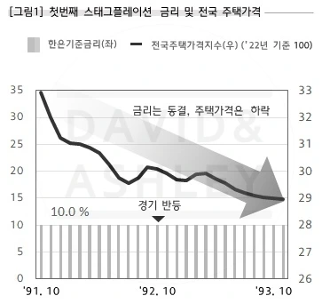 1차 스태그플레이션('91~'93) 시기 금리와 집값의 변화