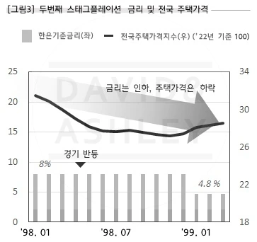 2차 스태그플레이션('98~'99) 시기 금리와 집값의 변화