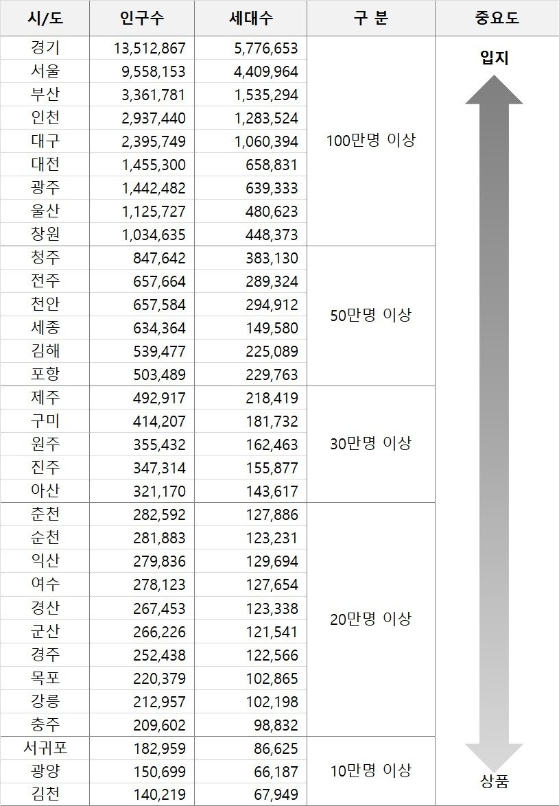 이렇게 지역 내 새로운 대장의 탄생을 미리 알아보기 위해서는 아래 표를 기억하고 계셔야 합니다.