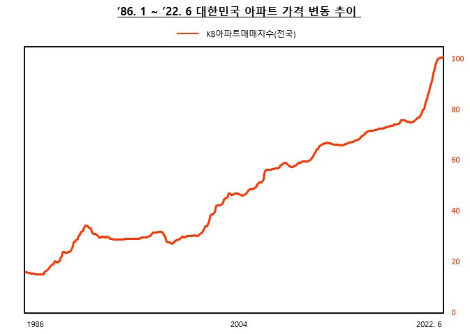국내 아파트 매매 가격 지수 (1986 ~ 2022 현재)
