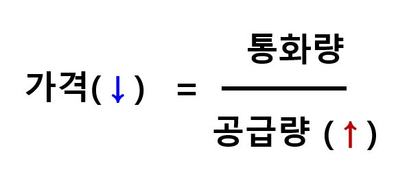 화폐수량이론 (단순화) : 실물자산의 가격은 통화량에 비례하고 공급량에 반비례한다