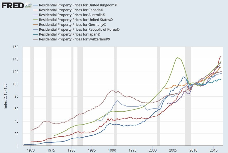 세계 주요 국가 명목주택가격지수 (1970 ~ 2017)