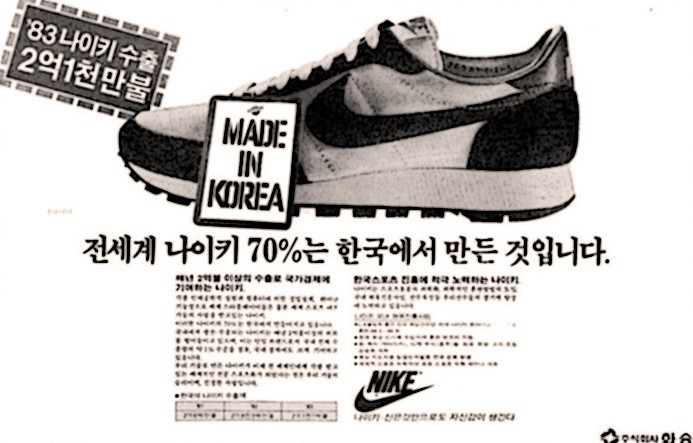 제가 태어나기도 이전 나이키 신발 광고입니다. 검색해보니 아래 보이는 나이키 운동화는 한화로 약 19,600원 정도 했다고 하네요...(함정은 월급도 30만원이었다는 것..) 공장만 늘리면 생산량을 늘릴 수 있는 신발의 가격도 10배 이상 올랐습니다.
