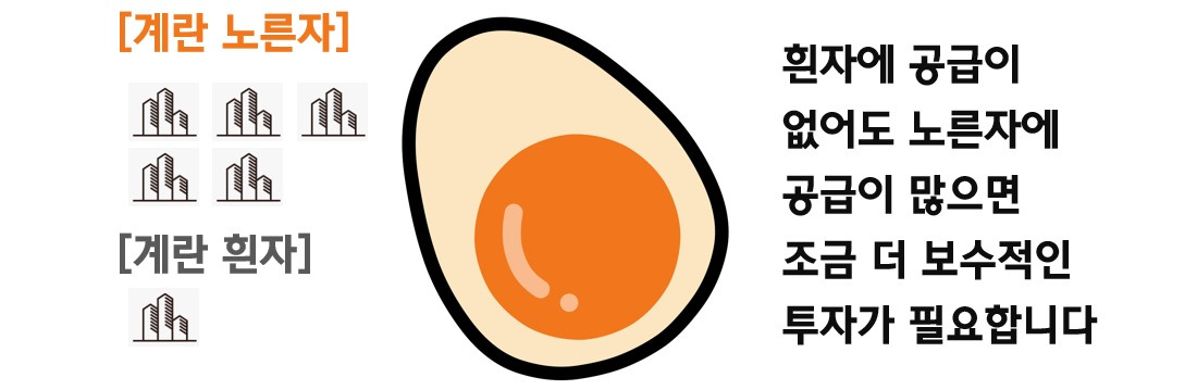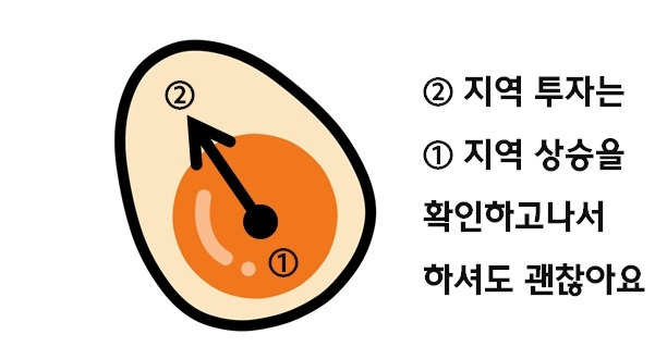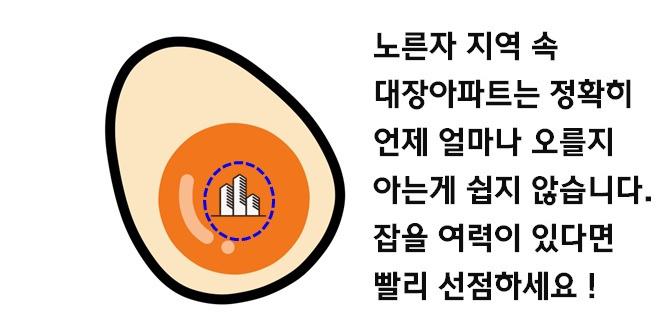 ● 이렇게 흰자 지역에 투자를 고려할 땐, 같은 계란의 노른자 지역이 이미 상승을 진행하고 있는지 확인함으로써 투자의 확신을 가질 수 있습니다. 노른자 지역 상승은 흰자 지역 상승의 선행지표이기 때문이죠.