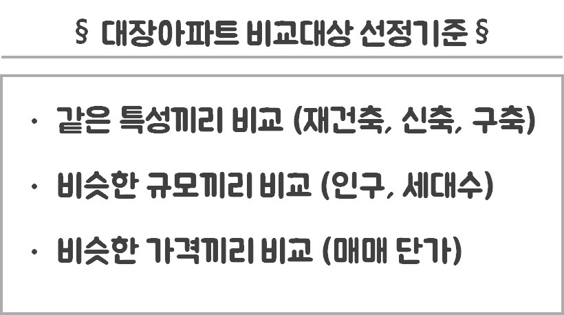 그럼 구체로 대장아파트 비교대상 어떻게 선정하는지 알아볼까요?