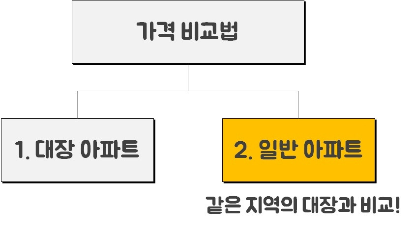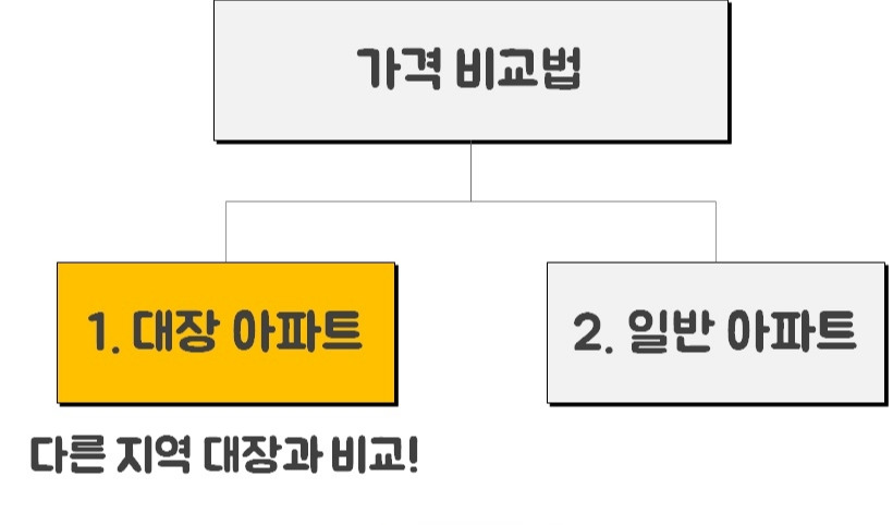 ● 가격비교의 목표는 '싼듯한 가격의 감'을 잡아내는 것입니다. 그리고 이 싼듯한 가격을 알아내기 위한 방법은 여러분이 투자하려는 아파트가 대장인지 아닌지에 따라 2개로 구분됩니다.