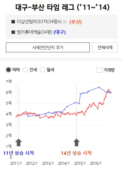 2014년부터 대구의 부동산의 독주를 따라잡기 시작한 부산