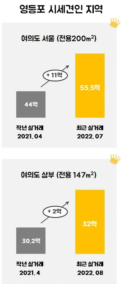 ● 위에 언급된 지역 이외에도 부동산 시장 조정기에 현금부자들의 돈이 몰린 지역이 있습니다. 바로 영등포구의 여의도동입니다.