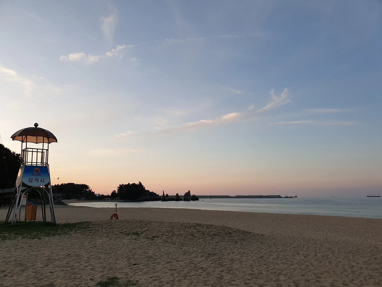지중해를 닮은 산토리니 광장에서 사진도 찍었다. 푸른 하늘과 흰 건물, 그리고 동해의 푸름이 어우러져 이국적인 풍경을 만든다. 소화도 시킬 겸 짝꿍과 백사장과 해안 산책로를 걸었다. 발밑의 모래는 부드럽고 파도는 일정한 리듬으로 밀려왔다.