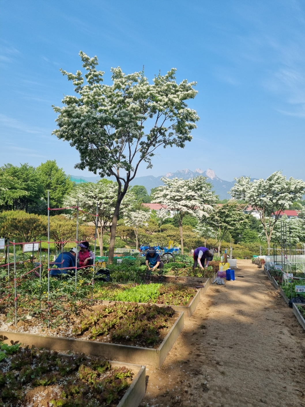 4월 초, 힘들게 얻은 텃밭에 가기 위해 나트 막 한 동산을 오르고 내렸다. 텃밭 주변 잘 만들어진 공원을 걷고 그네를 타거나 벤치에 앉아 가져간 샌드위치나 커피를 즐기며 구름이 오가는 하늘을 맘껏 보았다.