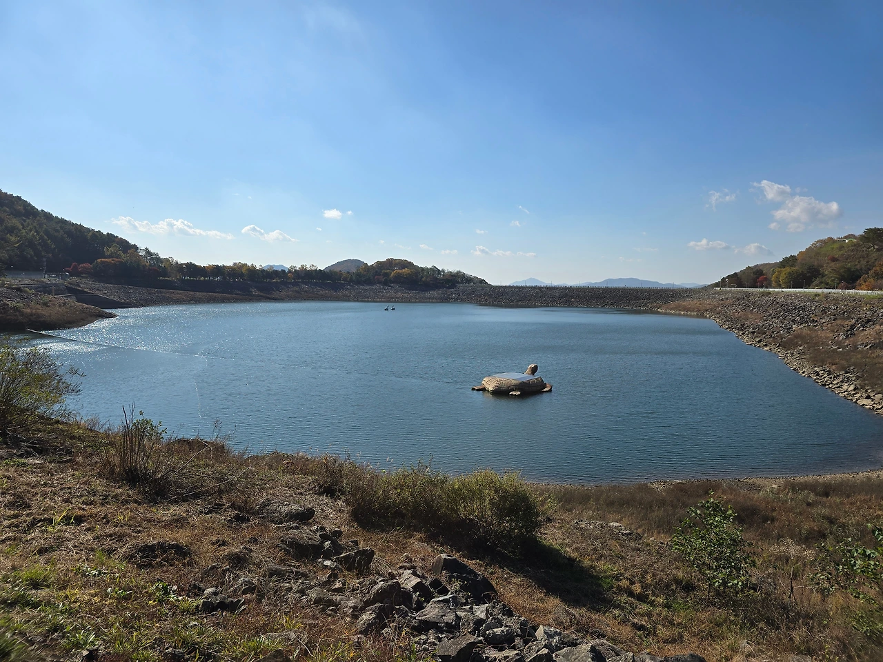 특이하게도 호수 한가운데 태양광판넬을 등에 씌운 대형거북이 상이 있었는데 그 거북이가 밤에도 일하는 것 같아서 안쓰러웠다.