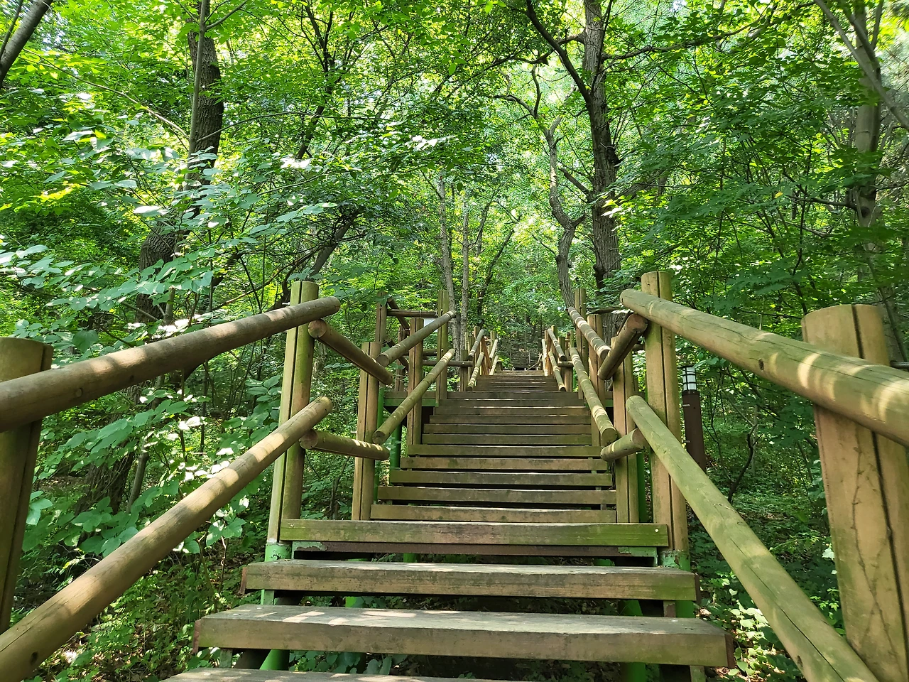 강한 햇볕 사이, 푸른 잎사귀 속에서 연약하면서 끈질긴 생명력을 마주한다. 산빛, 햇빛 모두가 밝고 찬란하다.가슴이 확 트인다.