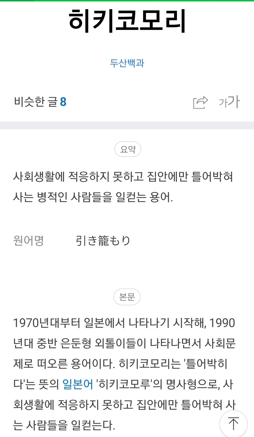 사회생활에 적응하지 못하고 집안에만 틀어박혀 사는 사람들을 일컫는 히키코모리.