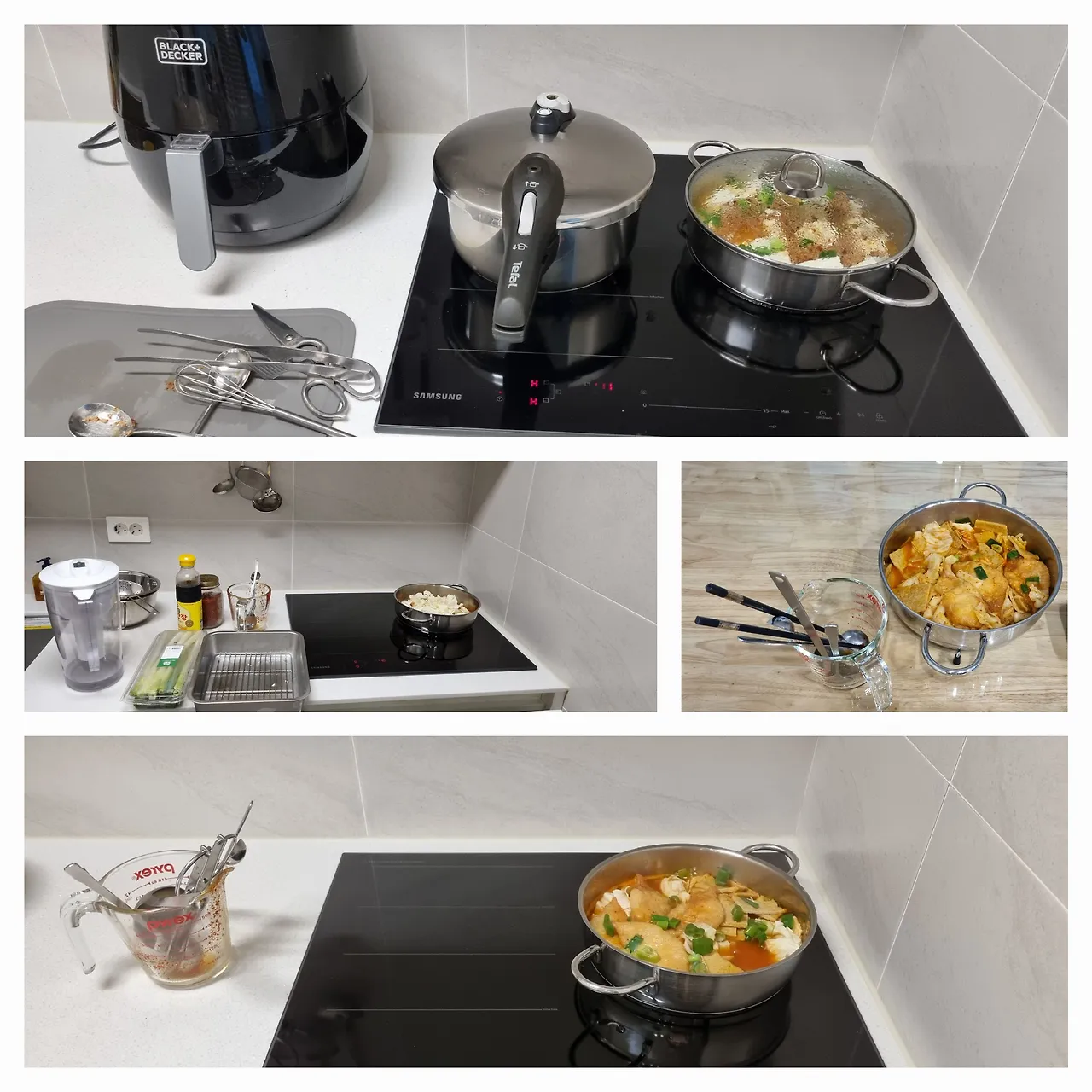 이사 업체가 정리를 마친 작은 집의 부엌. 이전에 꺼내놓고 쓰던 것들 중 운 좋게 이 집까지 살아온 것들이 모두 올라와 있다. 난감하다. 수납도 수납이지만 조리공간이 턱없이 부족하다. 인덕션과 개수대 사이 거리는 딱 3.5L 용량 에어프라이어 하나만큼이다. 드넓은 아일랜드 식탁은 없다. 상부장 오른쪽 가장 큰 문 안에 후드가 들어있고 싱크볼 하부에는 보일러 배관이 들어있다. 그 옆은 식기세척기니 사실상 수납공간은 상부장 한 칸, 하부장의 서랍 두 개가 전부다. 가스배관과 보일러 배관함을 활용해 짜 넣은 붙박이장 일부에 부엌살림이 들어간다.고백하건대 처음 3일 연속 외식했다. 여기서 무엇을 만들어 먹을 엄두가 나지 않았다.