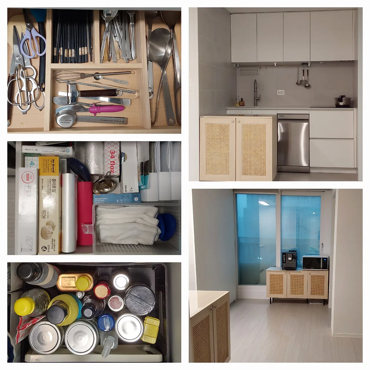 왼쪽은 싱크대 서랍장 내부, 오른쪽은 오늘의 부엌